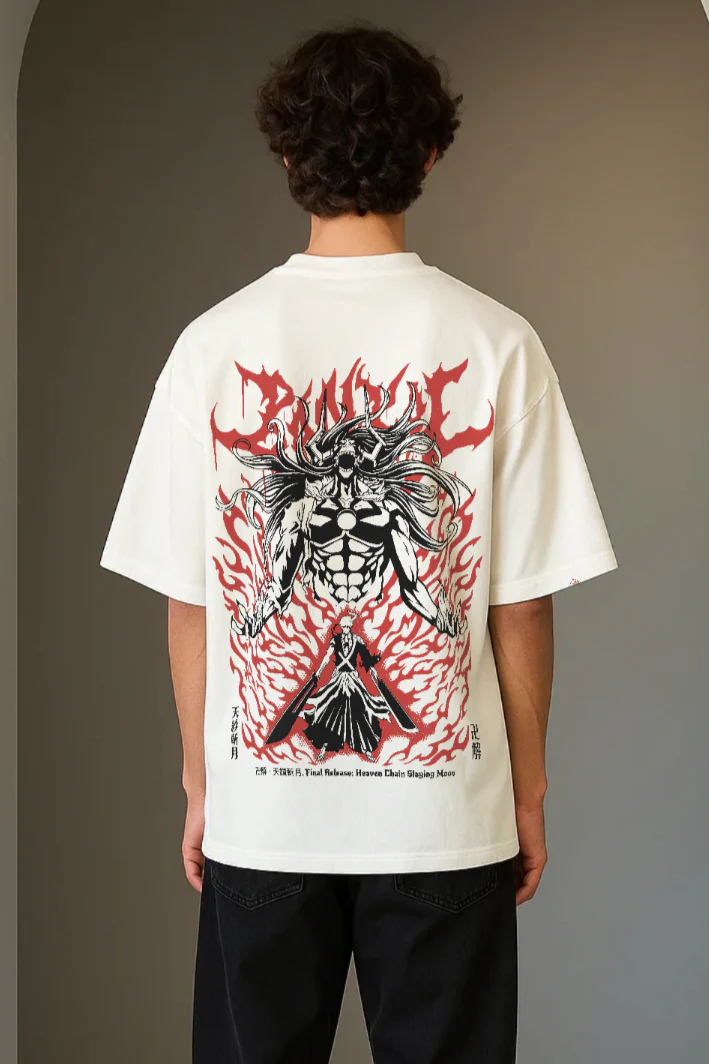 Upgrade your wardrobe with the Bleach Bankai Oversized T-shirt – a perfect blend of fandom and functionality. Make it yours today and let your love for Bleach shine through!