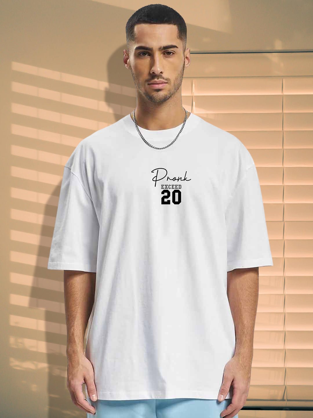 Product Description Half Sleeves Crew Neck 200 GSM Fabric Fit: Oversized Fit Fabric: 100% Premium Cotton | Sustainable 2X stronger cotton thread used Size: Model is wearing L size Country of Origin: Proudly Indian Washing Instructions: Machine wash. Do not iron directly or scrub on print. Dry on flat surface as hanging may cause measurement variations Color shown in the picture may vary from the actual product due to different lighting Product Description Buy the premium quality white color indie music men oversized printed t-shirt available in XS,S,M,L,XL,XXL size online from Pronk. Explore our unique collection of men’s half sleeve T-shirts at Pronk India’s fastest growing fashion brand. Buy now!