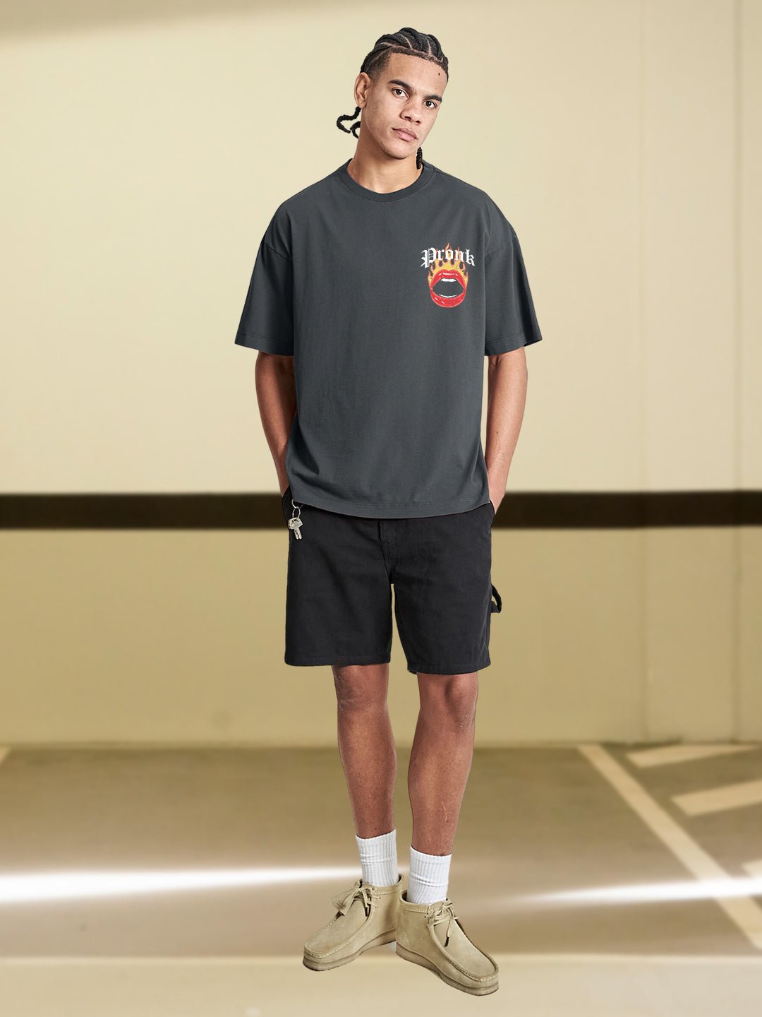 Product Detail : Half Sleeves Crew Neck 200 GSM Fabric Fit: Oversized Fit Fabric: 100% Premium Cotton | Sustainable 2X stronger cotton thread used Size: Model is wearing L size Country of Origin: Proudly Indian Washing Instructions: Machine wash. Do not iron directly or scrub on print. Dry on flat surface as hanging may cause measurement variations Color shown in the picture may vary from the actual product due to different lighting Product Description Buy premium Solid Men oversized t-shirt in Dark Grey color at Pronk. Available in XS, S, M, L, XL, XXL size. Choose from the latest trendy designs of men’s oversized t shirts. Shop online now!