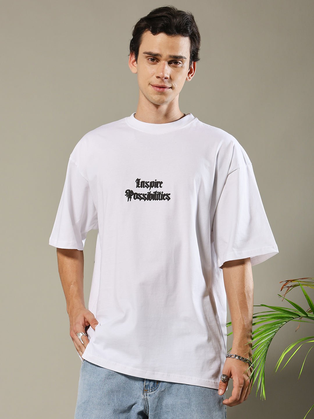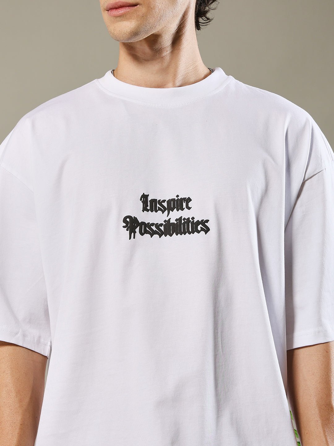 Upgrade your style with our premium Inspire Possibilities Puff Printed Men Oversized T-shirt. Designed for comfort and everyday wear.