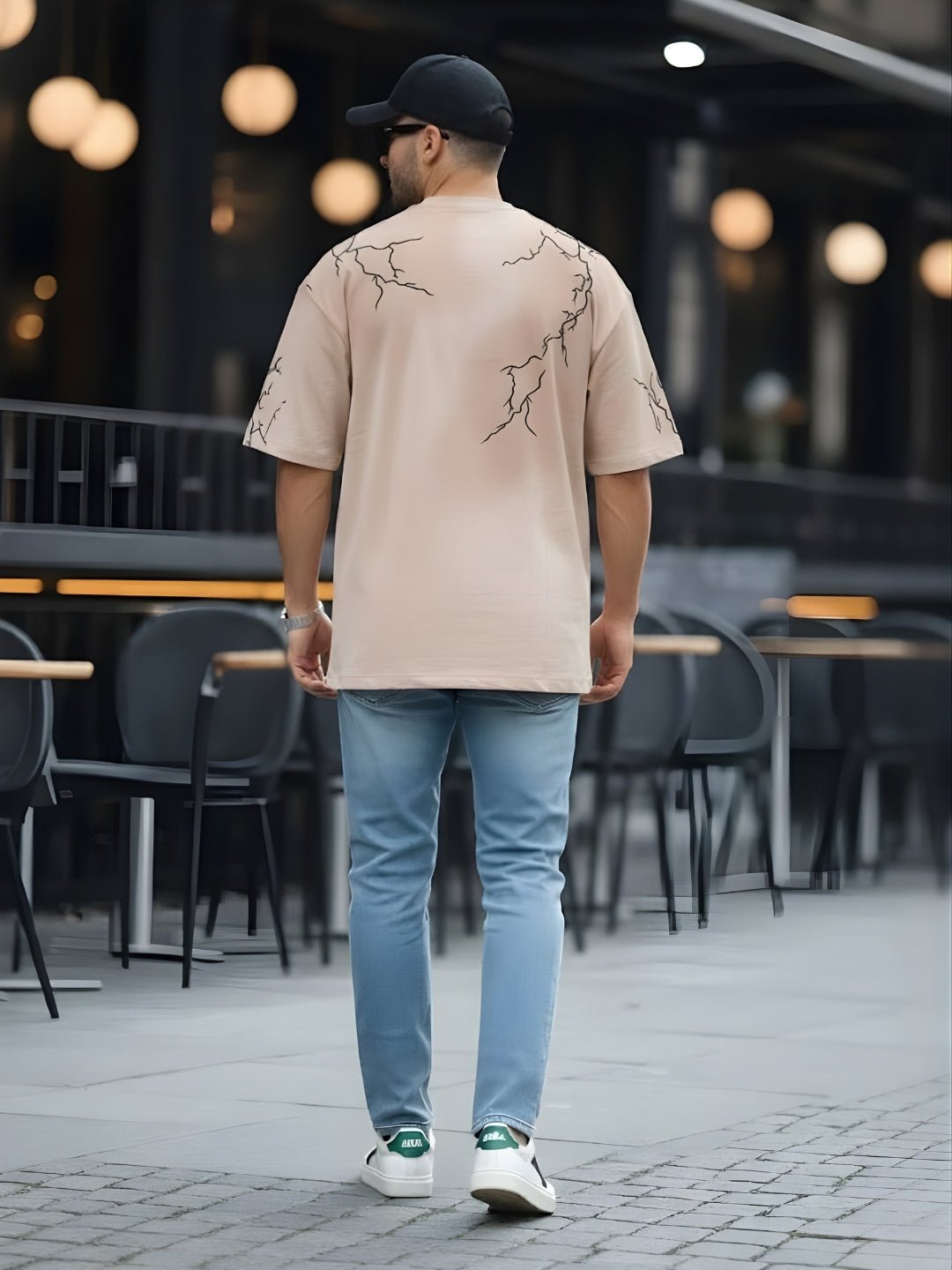Product Detail : Oversized Fit Printed / Graphic print 100% Cotton Crew neck Half sleeves Fit: Oversized Fit Fabric: 100% Premium Cotton | Sustainable 2X stronger cotton thread used Size: Model is wearing L size Country of Origin: Proudly Indian Washing Instructions: Machine wash. Do not iron directly or scrub on print. Dry on flat surface as hanging may cause measurement variations Color shown in the picture may vary from the actual product due to different lighting Product Description Shop the Men Beige Premium Printed Oversized T-Shirt at PRONK. Available in XS to XXL size. Perfect for everyday standout style. Free worldwide shipping!