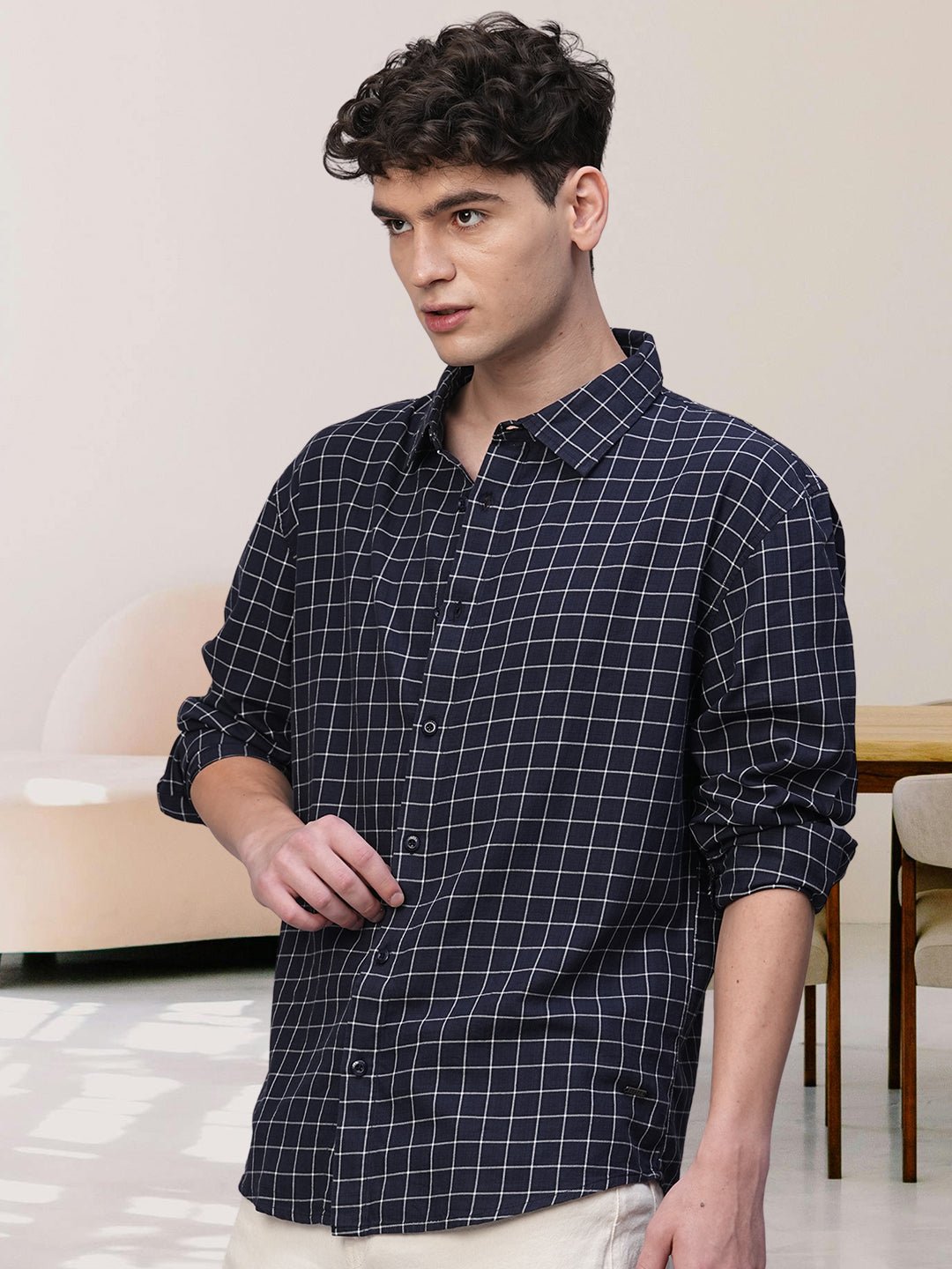 Full Sleeves Curved Bottom Hem Extra Button Provided Spread Collar Country of Origin: Proudly Indian Fit: Relaxed Fit Fabric: Twill | Sustainable thread used Washing Instructions: Machine wash. Do not iron directly or scrub on print. Dry on flat surface as hanging may cause measurement variations Color shown in the picture may vary from the actual product due to different lighting Product Description Get the premium Celestialarcane men full sleeve check shirt in dark navy color available in S, M, L, XL, XXL. Explore wide range of Men’s shirts online at best prices on Celestialarcane.