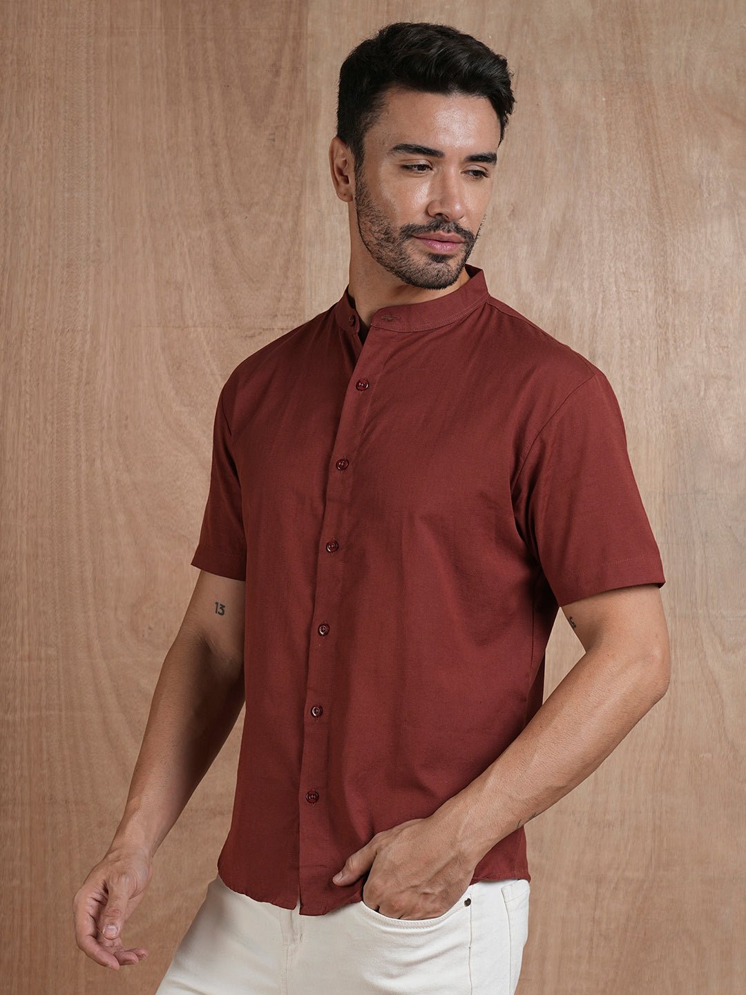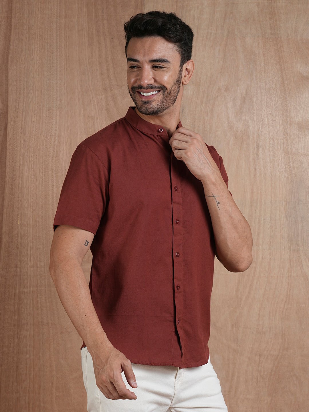 Product Description Half Sleeves Curved Bottom Hem Extra Button Provided Band Collar Country of Origin: Proudly Indian Fit: Relaxed Fit Fabric: Premium Cotton | Sustainable thread used Washing Instructions: Cold machine wash only, flat dry in shade, do not wring Color shown in the picture may vary from the actual product due to different lighting Product Description Buy Men’s Half sleeves shirt in multiple color option available in S, M, L, XL, XXL. Explore wide range of full sleeves Shirts online for men at best prices on Pronk. Free shipping. Buy now!