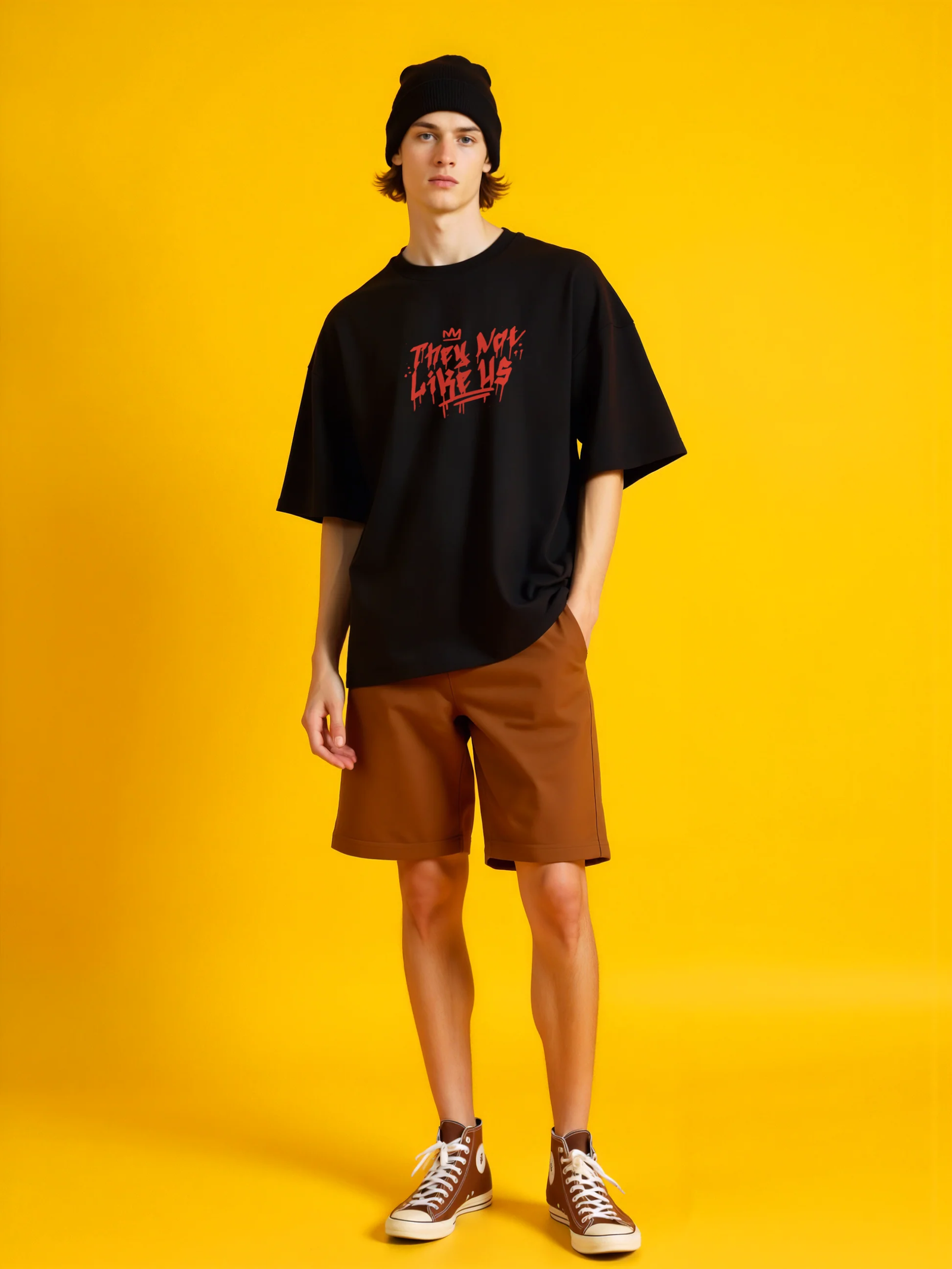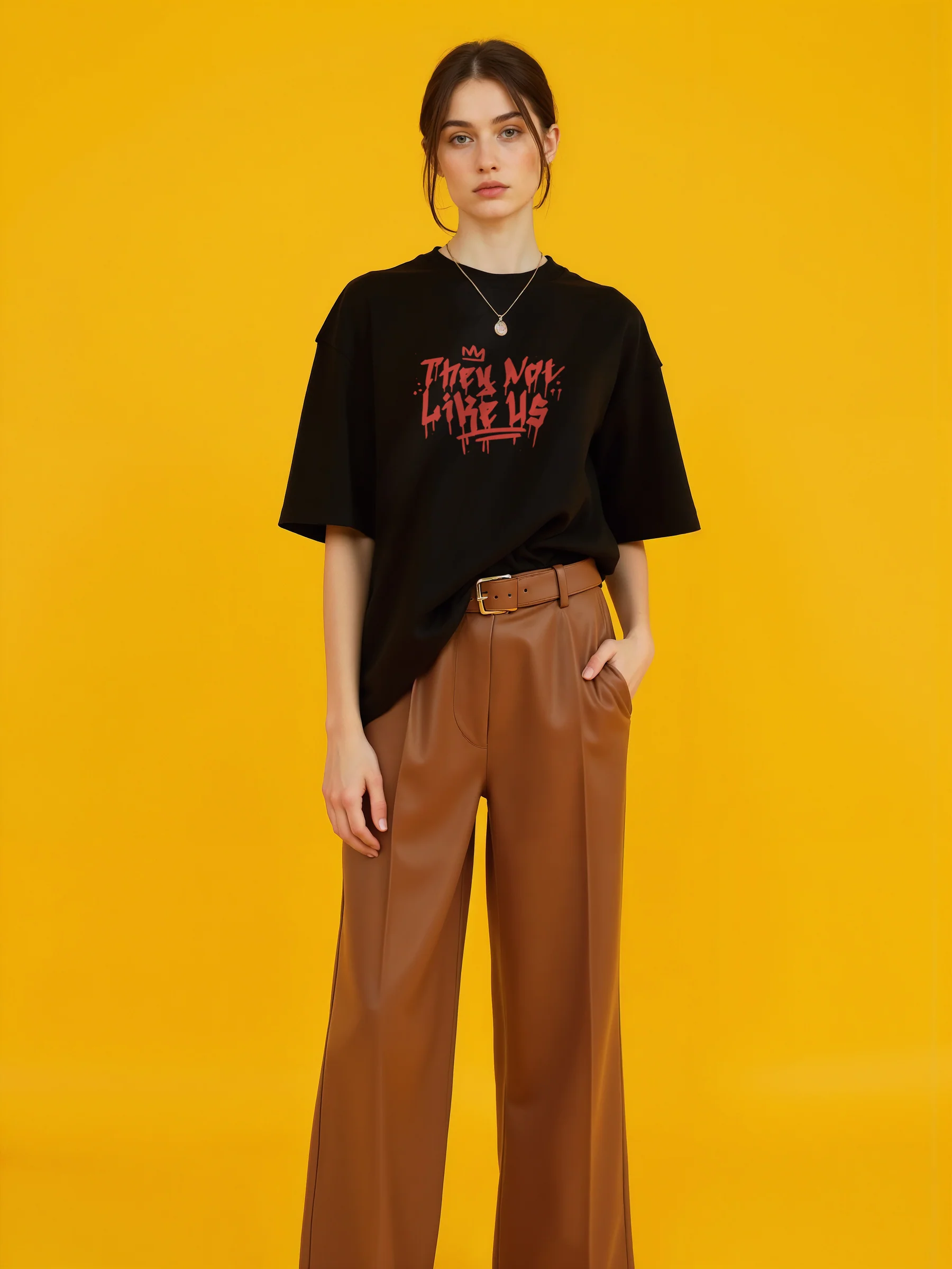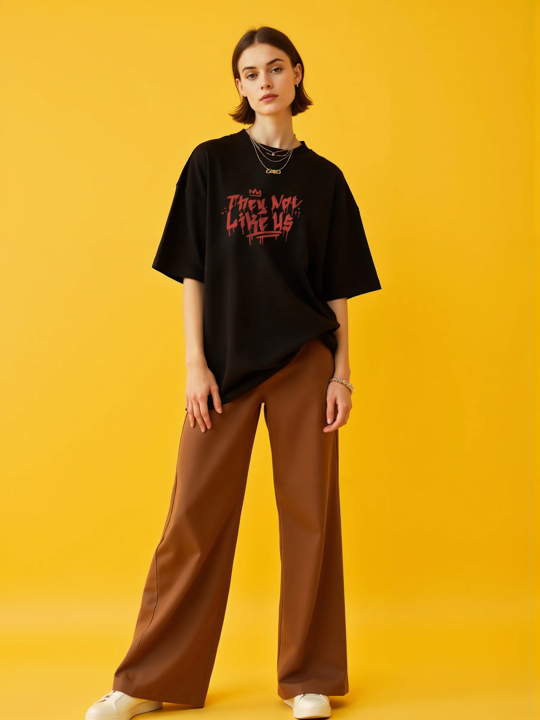 The ‘Not Like Us’ graphic print, influenced by Kendrick Lamar’s impactful vision, takes center stage with bold typography and an artful, creative aesthetic. It’s not just a T-shirt—it’s a wearable tribute to a legendary artist’s message of self-expression and resilience. Pair it with your favorite jeans, sneakers, or even go daring with layered styles; this T-shirt adapts effortlessly to your vibe.