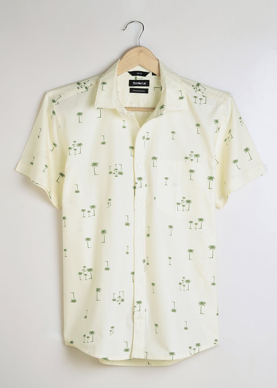 Upgrade your style with our premium Palm Print Mens Half Sleeve Shirt. Designed for comfort and everyday wear.