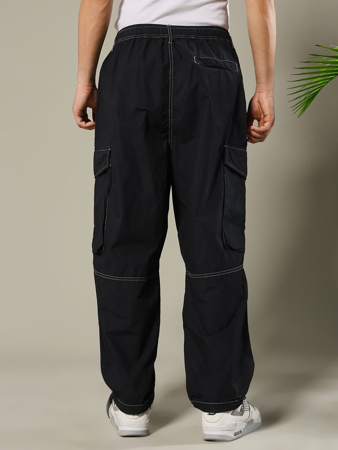 Parachute Pants Unique Design Fit: Relaxed Fit Fabric: Lightweight Fabric Size: Model is wearing L size Country of Origin: Proudly Indian Washing Instructions: Machine wash. Do not iron directly or scrub on print. Dry on flat surface as hanging may cause measurement variations Color shown in the picture may vary from the actual product due to different lighting Product Description Get the best quality parachute pants for men in black color and available in 28 to 38 size. Explore a vast selection of men’s bottom wear at our website. Shop now at Pronk with free worldwide shipping.