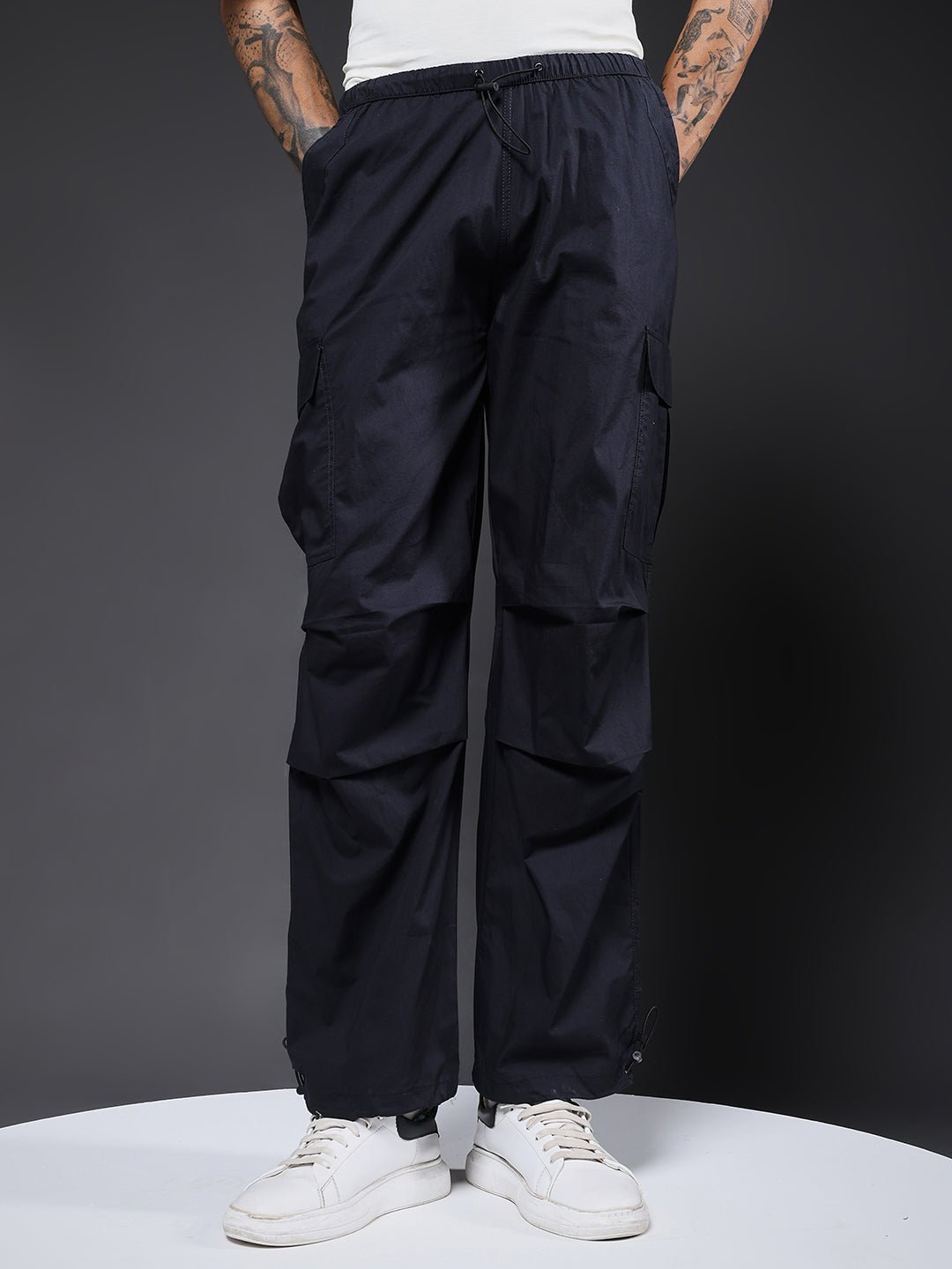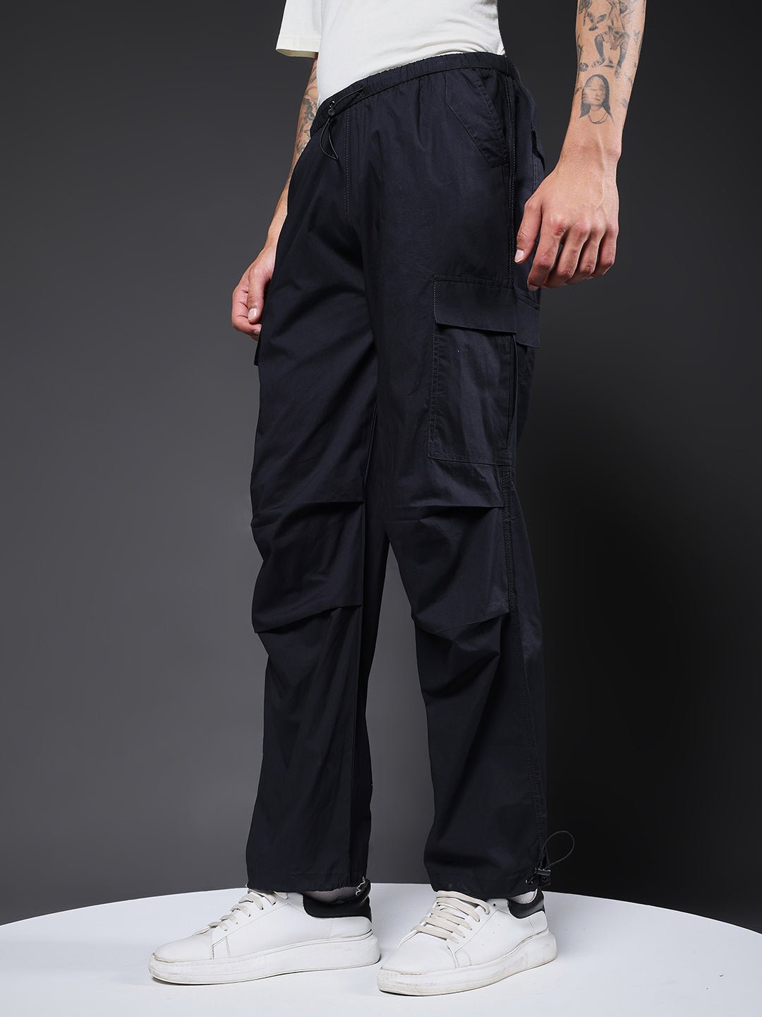 Parachute Pants Diagonal On Seam Hip Pockets, 2 Back Mock Pockets Fit: Baggy Fit Material: 100% Cotton Popline Fabric Size: Model is wearing L size Country of Origin: Proudly Indian Washing Instructions: Machine wash. Do not iron directly or scrub on print. Dry on flat surface as hanging may cause measurement variations Color shown in the picture may vary from the actual product due to different lighting Product Description Get the best quality parachute pants for men in Black color and available in XS, S, M, L, XL size. Explore a vast selection of men’s bottom wear at our website. Shop now at Pronk with free worldwide shipping.