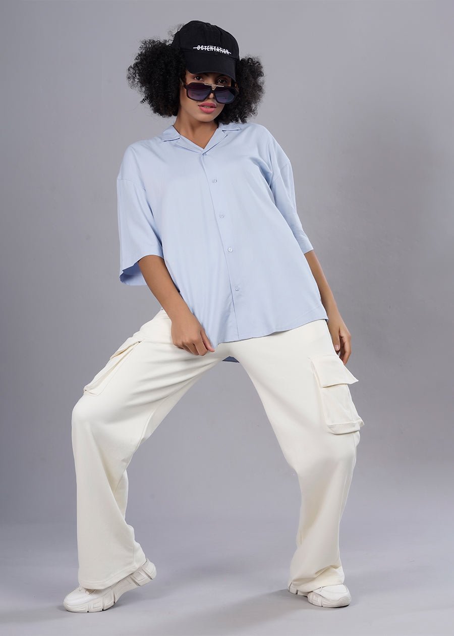 Half Sleeves Curved Bottom Hem Cuban Collar Country of Origin: Proudly Indian Fit: Oversized Fit Fabric: Fluidic Fabric | Sustainable thread used Washing Instructions: Cold machine wash only, flat dry in shade, do not wring Product Description Reunion premium sky blue printed fluidic fabric oversized fit shirt for womens by Pronk. Available in XS,S,M,L,XL. Check out vast collection of oversized shirts at our website. Buy now! Color shown in the picture may vary from the actual product due to different lighting