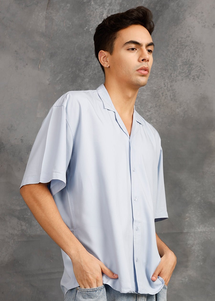 Upgrade your style with our premium Solid Mens Fluidic Oversized Shirt Sky. Designed for comfort and everyday wear.