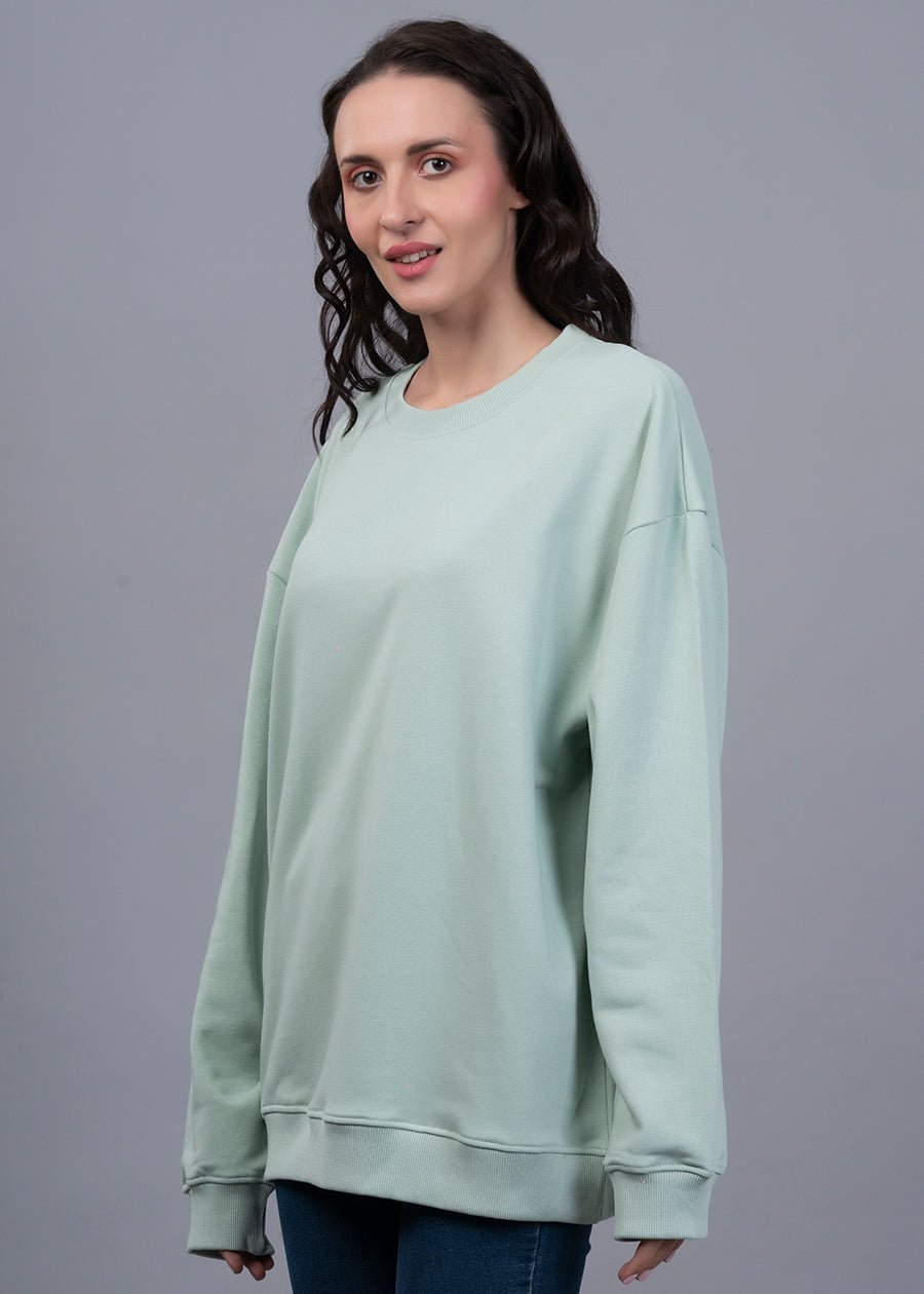 Upgrade your style with our premium Solid Mint Green Women Drop Shoulder Terry Sweatshirt | Pronk. Designed for comfort and everyday wear.