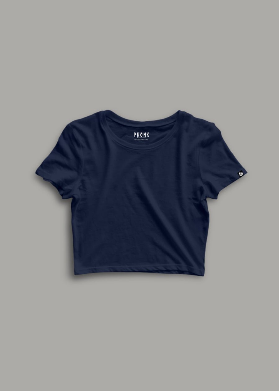 • Country of Origin: Proudly Indian • Material: 100% Cotton • GSM: 175 GSM • Neck: Round Neck • Sleeves: Half Sleeve • Bio Washed, Preshrunk, Silicon Washed Fabric • Light weight (Improves breathability in hot conditions as well) • Sustainable 2X stronger cotton thread used • Comfort (Bio washed fabric with Relaxed fit does not cling to the body) • Wash Care: Machine wash. Do not iron directly or scrub on print. Dry on flat surface as hanging may cause measurement variations Product Description Buy now Classic navy Solid Women Half Sleeve 100% cotton crop top from Pronk online in India. Available in xs, s, m, l, xl size. Surf through our vast collection of womens topwear at our website.