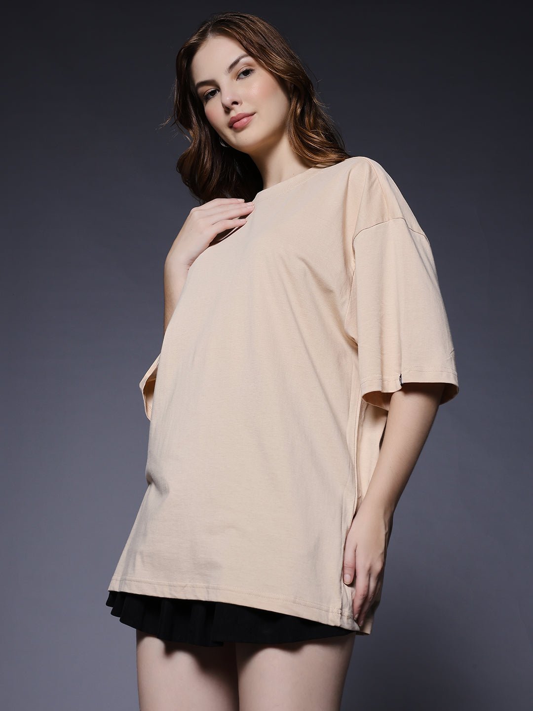Upgrade your style with our premium Solid Women Oversized T-Shirt – Beige. Designed for comfort and everyday wear.