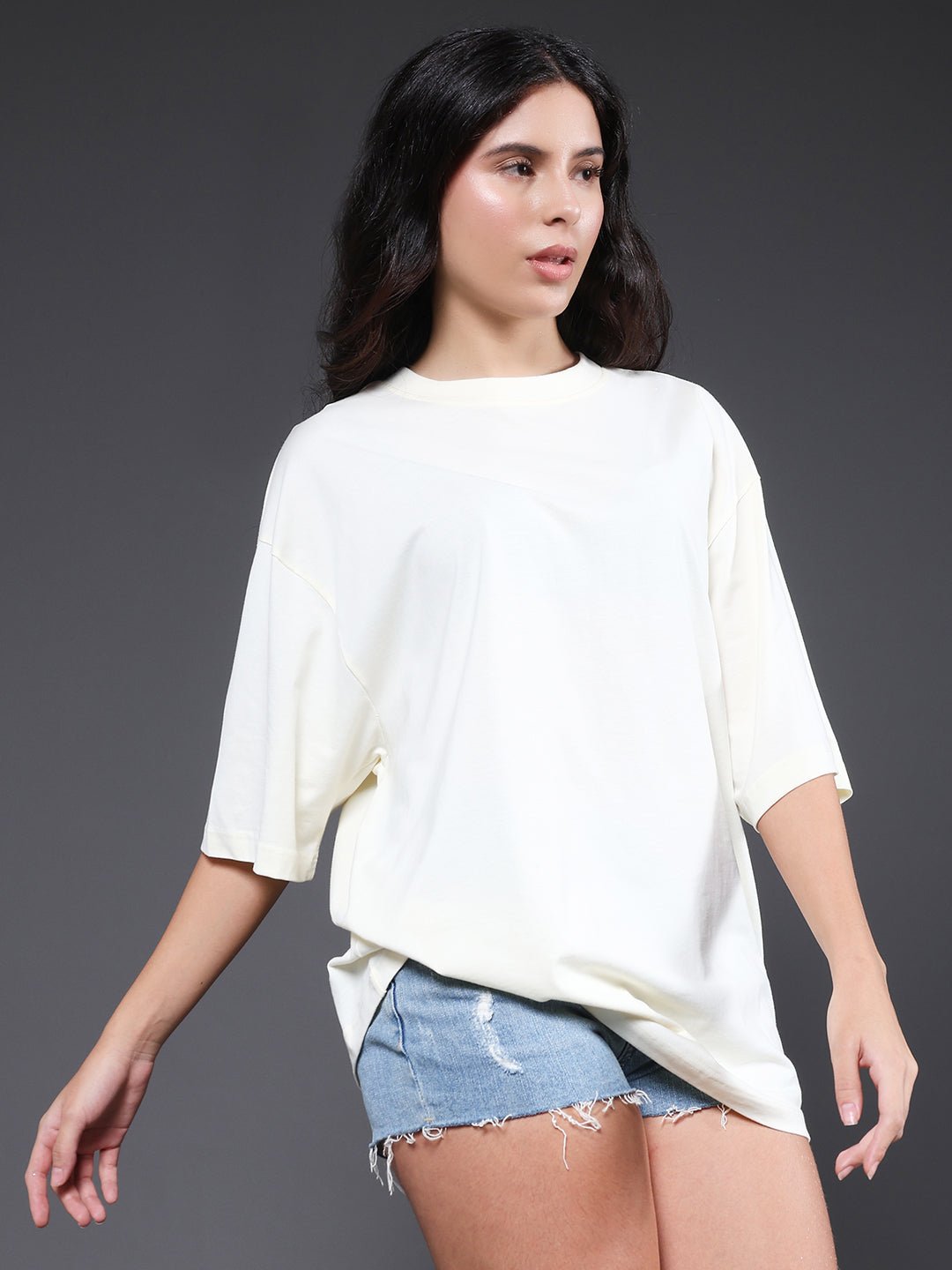 Upgrade your style with our premium Solid Women Oversized T-Shirt – Off White. Designed for comfort and everyday wear.