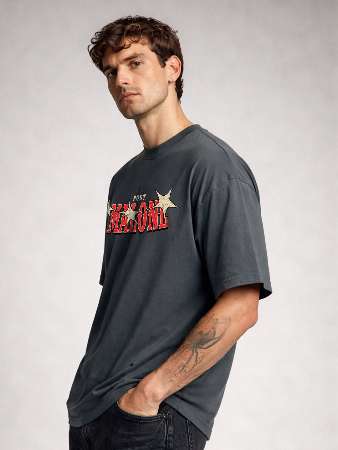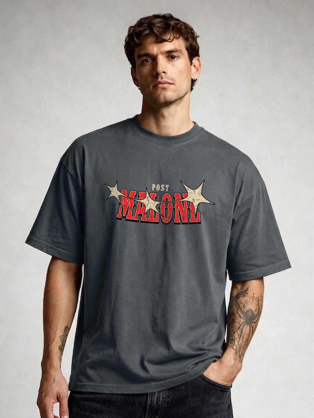 Product Detail : Oversized Fit Printed / Graphic print 100% Cotton Crew neck Half sleeves Fit: Oversized Fit Fabric: 100% Premium Cotton | Sustainable 2X stronger cotton thread used Size: Model is wearing L size Country of Origin: Proudly Indian Washing Instructions: Machine wash. Do not iron directly or scrub on print. Dry on flat surface as hanging may cause measurement variations Color shown in the picture may vary from the actual product due to different lighting Product Description Buy premium Printed Men oversized t-shirt in dark grey color at Pronk. Available in XS, S, M, L, XL, XXL size. Choose from the latest trendy designs of men’s oversized t shirts. Shop online now!