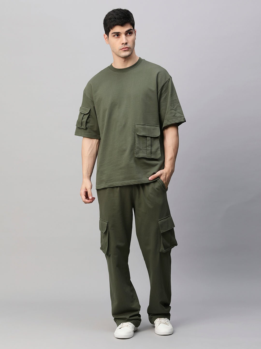 Streetwear Cargo Co-ord Set – Olive Green