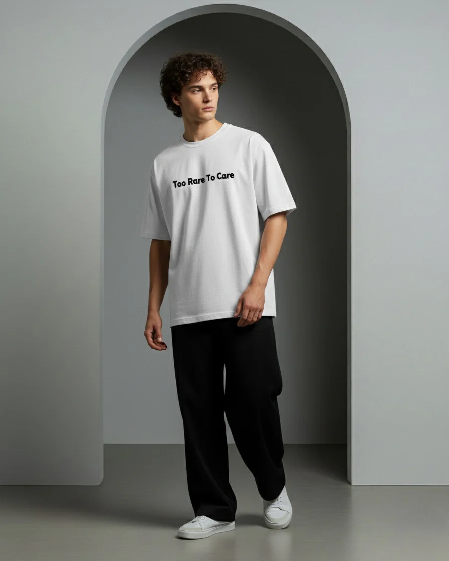 The bold ‘Too Rare To Care’ design captures unapologetic confidence, letting you stand out wherever you go. This t-shirt pairs effortlessly with jeans, joggers, or your favorite sneakers, making it an essential addition to your casual wardrobe. Designed to fit all genders, its oversized silhouette is perfect for those who love a laid-back yet impactful look.