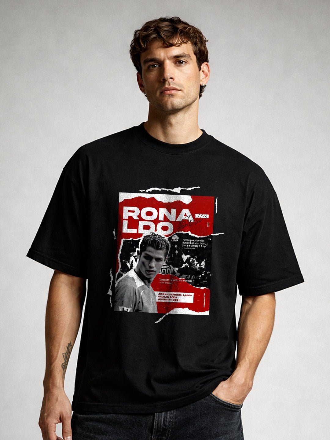 Product Detail : Oversized Fit Printed / Graphic print Crew neck Half sleeves Fit: Oversized Fit Fabric: 100% Premium Cotton | Sustainable 2X stronger cotton thread used Size: Model is wearing L size Country of Origin: Proudly Indian Washing Instructions: Machine wash. Do not iron directly or scrub on print. Dry on flat surface as hanging may cause measurement variations Color shown in the picture may vary from the actual product due to different lighting Product Description Elevate your looks with black color Men Printed Oversized T-Shirt. Buy online now from PRONK, available in XS to XXL size. Free worldwide shipping!