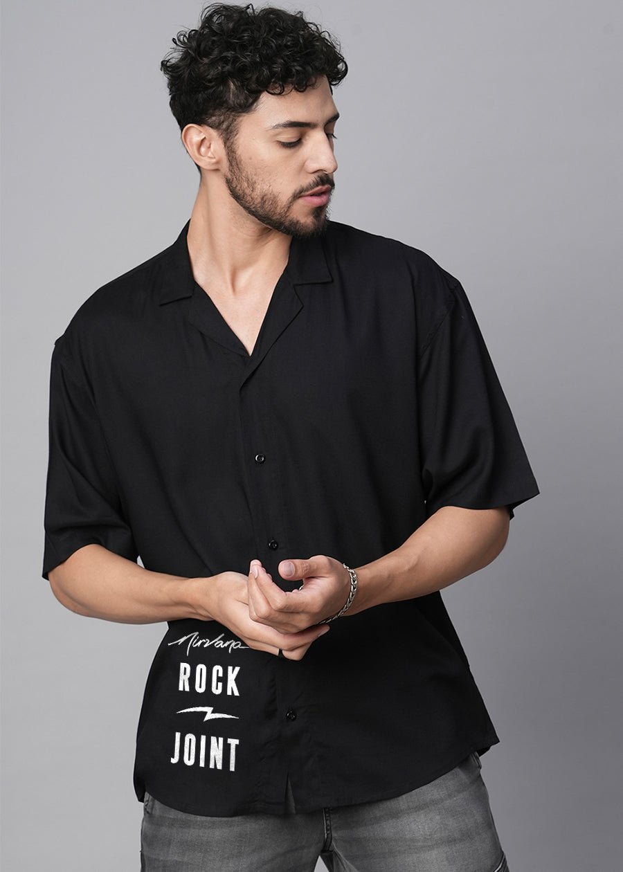 Half Sleeves Curved Bottom Hem Cuban Collar Country of Origin: Proudly Indian Fit:  Oversized Fit Fabric: Fluidic Fabric | Sustainable thread used Washing Instructions: Cold machine wash only, flat dry in shade, do not wring Color shown in the picture may vary from the actual product due to different lighting  Product Description Get black color Utero Nirvana mens fluidic oversized shirt at the lowest price from Pronk. Choose from an extensive collection of men’s shirts. Available in xs, s, m, l, xl sizes. Get everything trendy. Shop now!