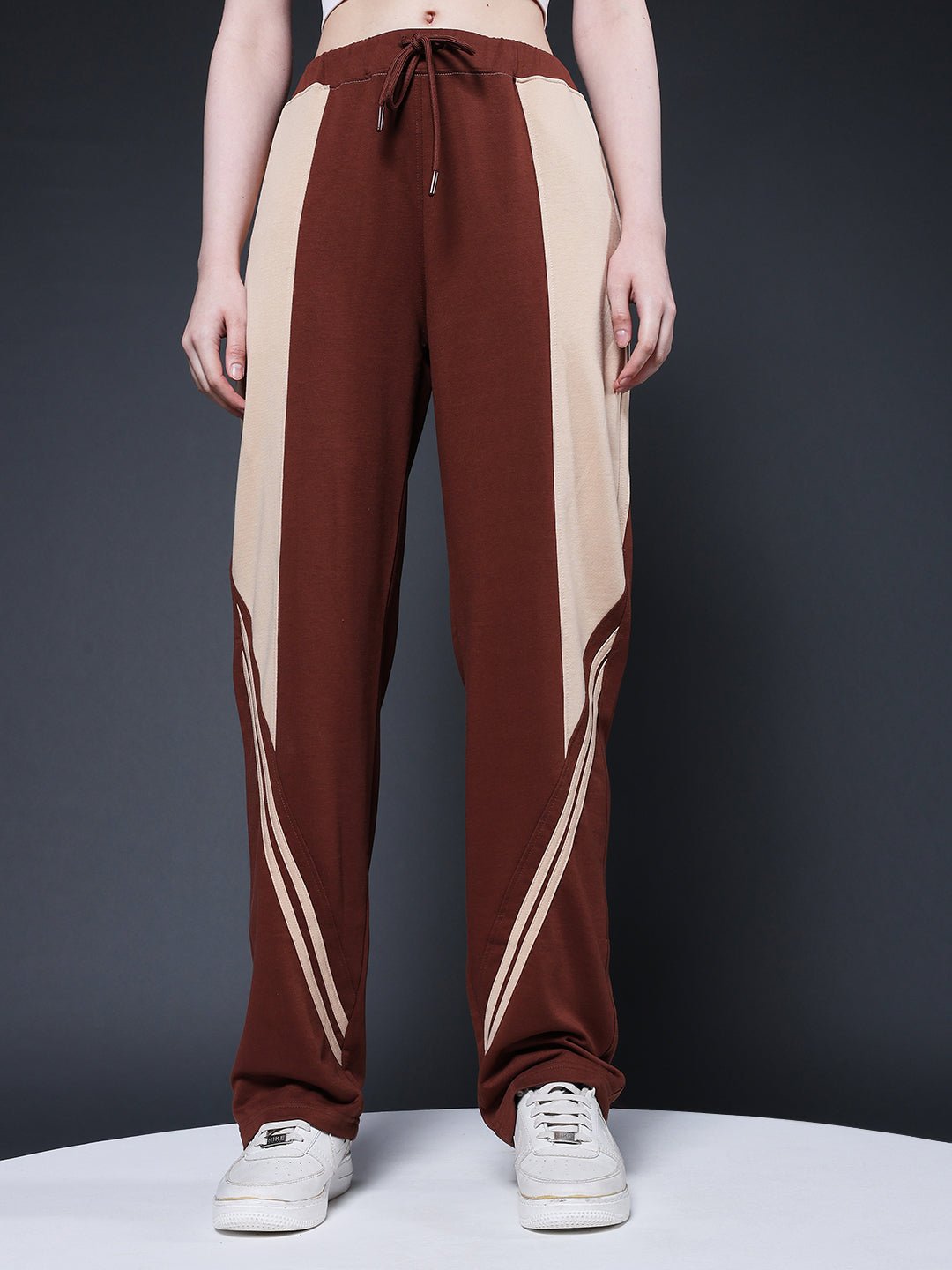 Women Colorblock Premium Terry Jogger with Side Stripes – Cocoa