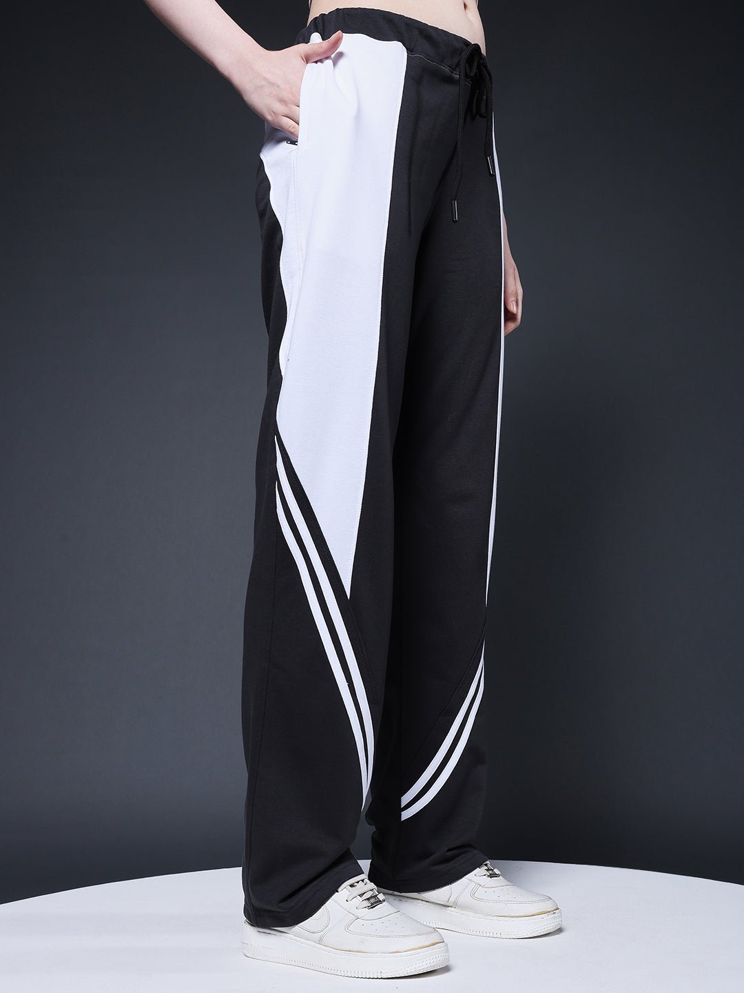 Stay comfortable and stylish with these dual-tone track pants featuring a sleek side stripe design. Made for both casual wear and light workouts.. Perfect for everyday use, travel, or lounging Specifications Occasion: Casual Outings, Travel Fit Type: Relaxed Fit Composition: 60% cotton 40% polyester Material: French Terry Waistband: Elastic with Adjustable Drawstring Length: Full Length Pockets: 2 Side Pockets including (one side zipper pocket) Size: Model is wearing L size Country of Origin: Proudly Indian Washing Instructions: Machine wash. Color shown in the picture may vary from the actual product due to different lighting Product Description Upgrade your style with PRONK’s dark grey color Women jogger. Available in S to XL size. Comfortable, trendy, and versatile bottomwear. Buy now!