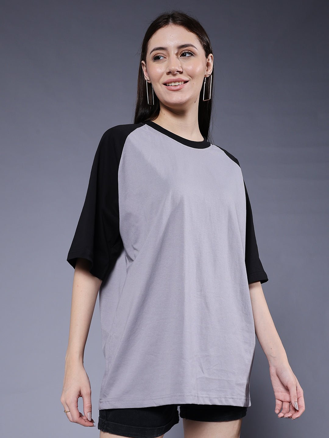 Product Description Women Oversized t-shirt with raglan sleeves and a relaxed fit for a trendy streetwear look. Crafted from soft and breathable fabric to keep you stylish and comfortable all day. Specifications Fit: Oversized Fit Pattern: Colorblock Material: 100% Cotton Neckline: Crew neck Sleeve Type: Half sleevesOccasion: Casual, streetwear Size: Model is wearing L size Country of Origin: Proudly Indian Washing Instructions: Machine wash cold, do not bleach Color shown in the picture may vary from the actual product due to different lighting