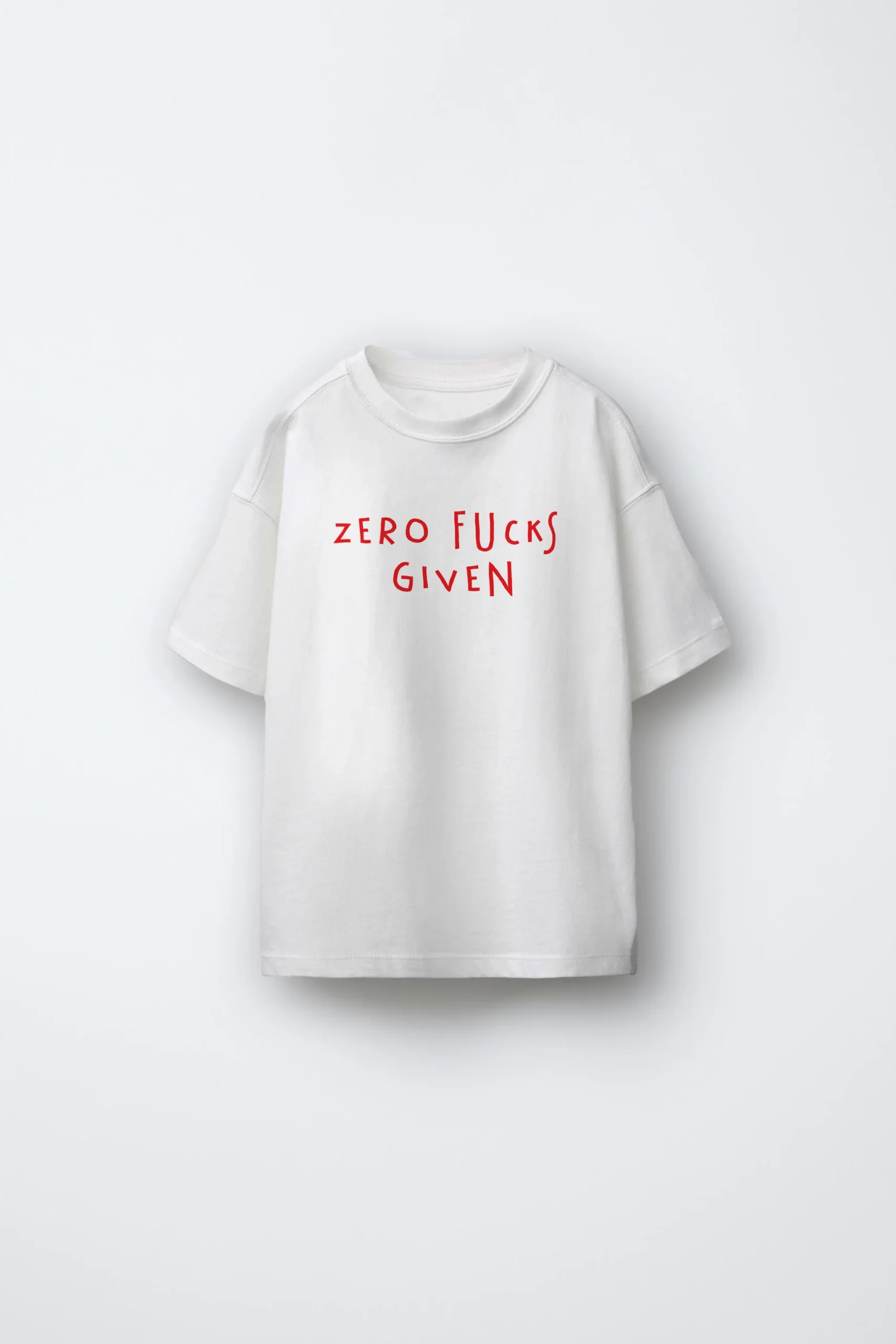 Crafted from premium, breathable fabric, the Zero Fucks Given T-shirt ensures effortless wear no matter where your day takes you. Its oversized fit provides ultimate comfort and versatility, making it the ideal choice for lounging at home, running errands, or creating casual streetwear vibes.